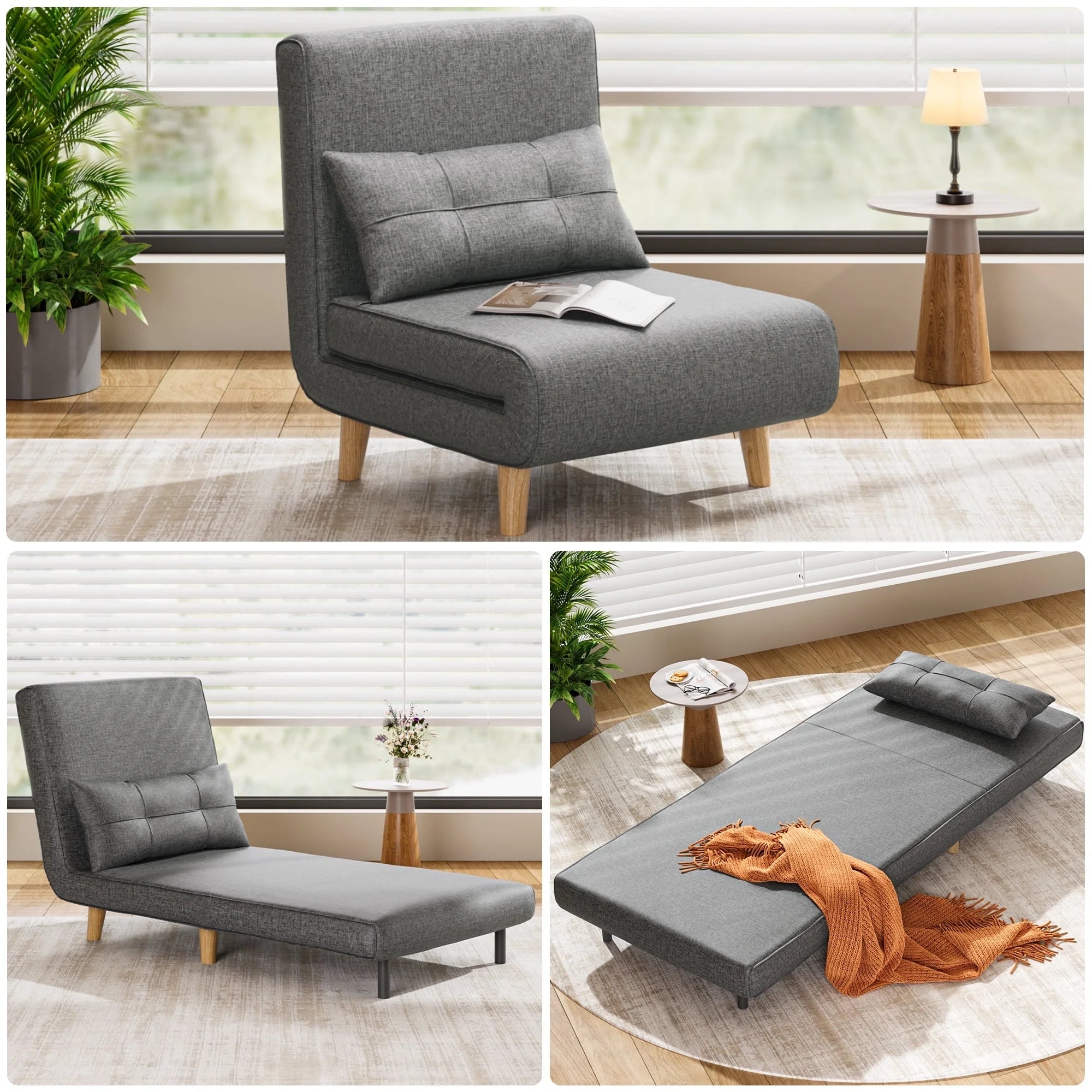Noelse 3 in 1 Sleeper Chair Bed, Convertible Sofa Bed Futon Sofa Sleeper with Adjustable Backrest for Apartment,Bedroom,Office, Dark Grey