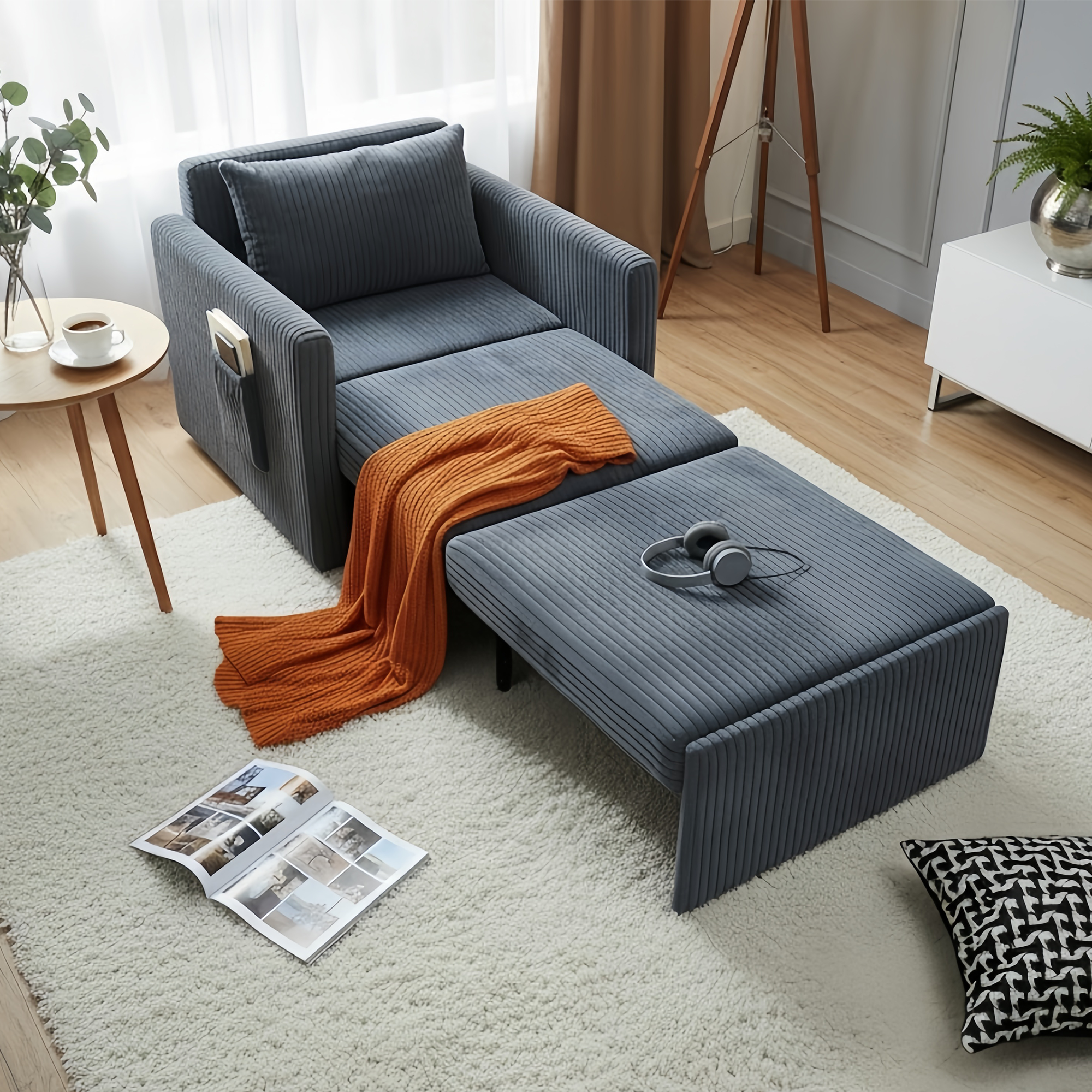 Wrapped in ultra-soft corduroy fabric, this chair bed brings a warm, textured look while remaining breathable and durable. Paired with high-resilience foam, it delivers cloud-like comfort and long-lasting support—perfect for lounging, napping, or everyday sitting.
